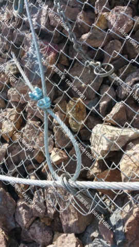 被動(dòng)邊坡防護(hù)網(wǎng)折疊材質(zhì)鋼絲繩網(wǎng)、支撐繩和減壓環(huán)。折疊構(gòu)造由鋼絲繩網(wǎng)或環(huán)形網(wǎng)(需攔截小塊落石時(shí)附加一層鐵絲格柵)、固定系統(tǒng)(錨桿、攔錨繩、基座和支撐繩)、減壓環(huán)和鋼柱四個(gè)主要部分構(gòu)成。折疊產(chǎn)品特性系統(tǒng)的柔性和攔截強(qiáng)度足以吸收和分散傳遞預(yù)計(jì)的落石沖擊動(dòng)能,消能環(huán)的設(shè)計(jì)和采用使系統(tǒng)的抗沖擊能力得到進(jìn)一步提高.與剛性攔截和砌漿擋墻相比較,改變了原有施工工藝,使工期和資金得到減少。